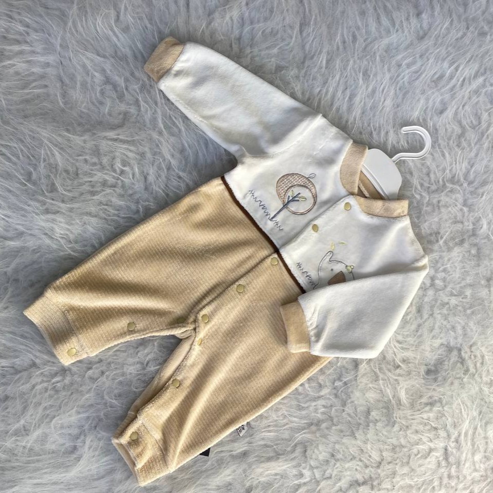 احصل على أفضل راحة لطفلك مع سالوبت القطيفه المصنوعة من خامة قطن قطيفه الناعمة. هذه السالوبت مثالية للأطفال من عمر يوم حتى 10 شهور، مما يجعلها خياراً رائعاً للنمو السريع للطفل.