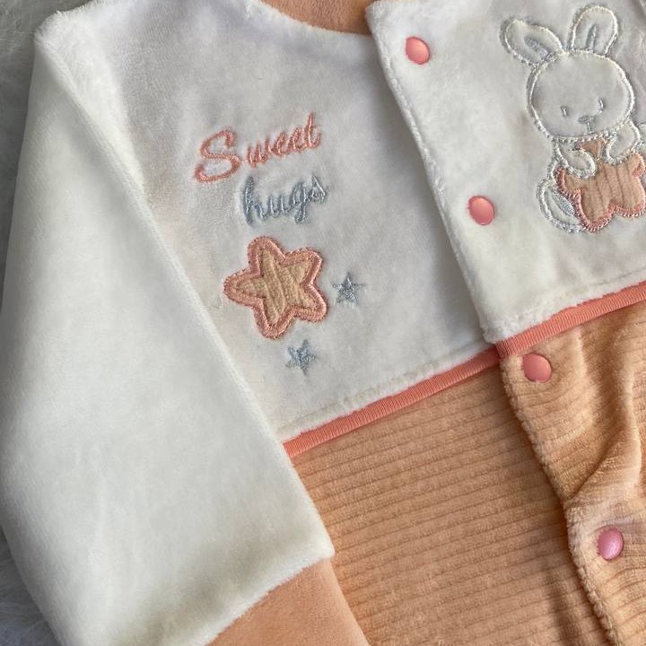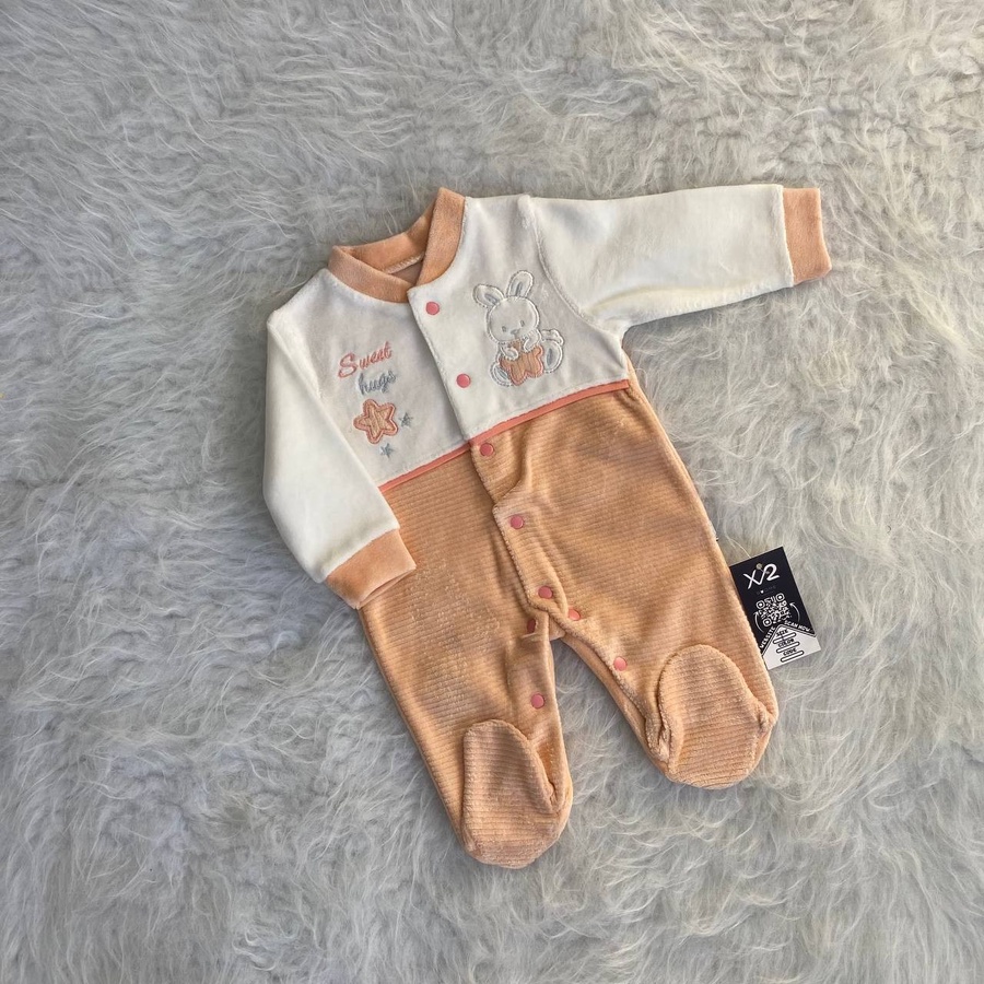احصل على أفضل راحة لطفلك مع سالوبت القطيفه المصنوعة من خامة قطن قطيفه الناعمة. هذه السالوبت مثالية للأطفال من عمر يوم حتى 10 شهور، مما يجعلها خياراً رائعاً للنمو السريع للطفل.