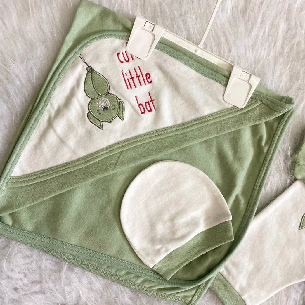 يتوفر الطقم بألوان عصرية تشمل زيتي، بيبي جرين، بيج، ورمادي، مما يجعله مناسبًا لكل الأذواق. يوفر هذا الطقم كل ما يحتاجه مولودك في أيامه الأولى من راحة وأمان. احصل على طقم مواليدك اليوم، واجعل كل لحظة مع طفلك مميزة!