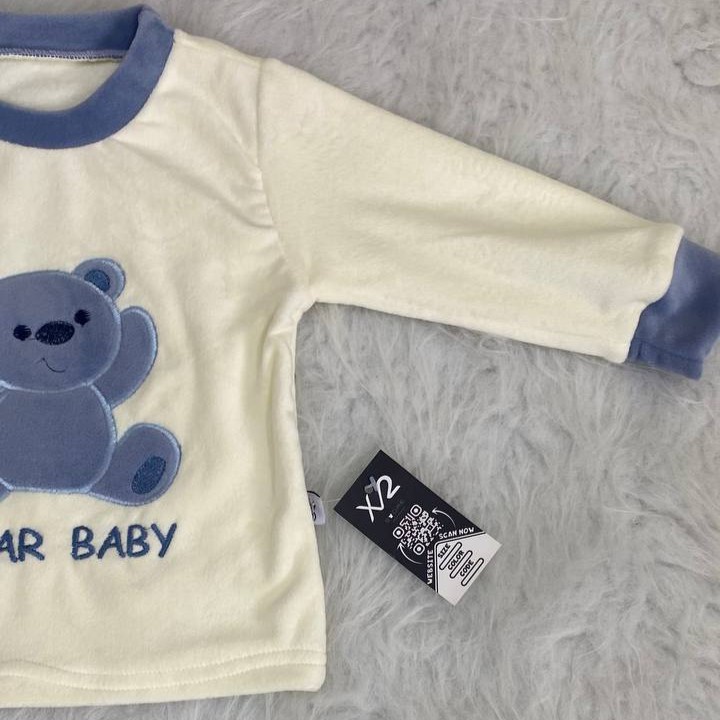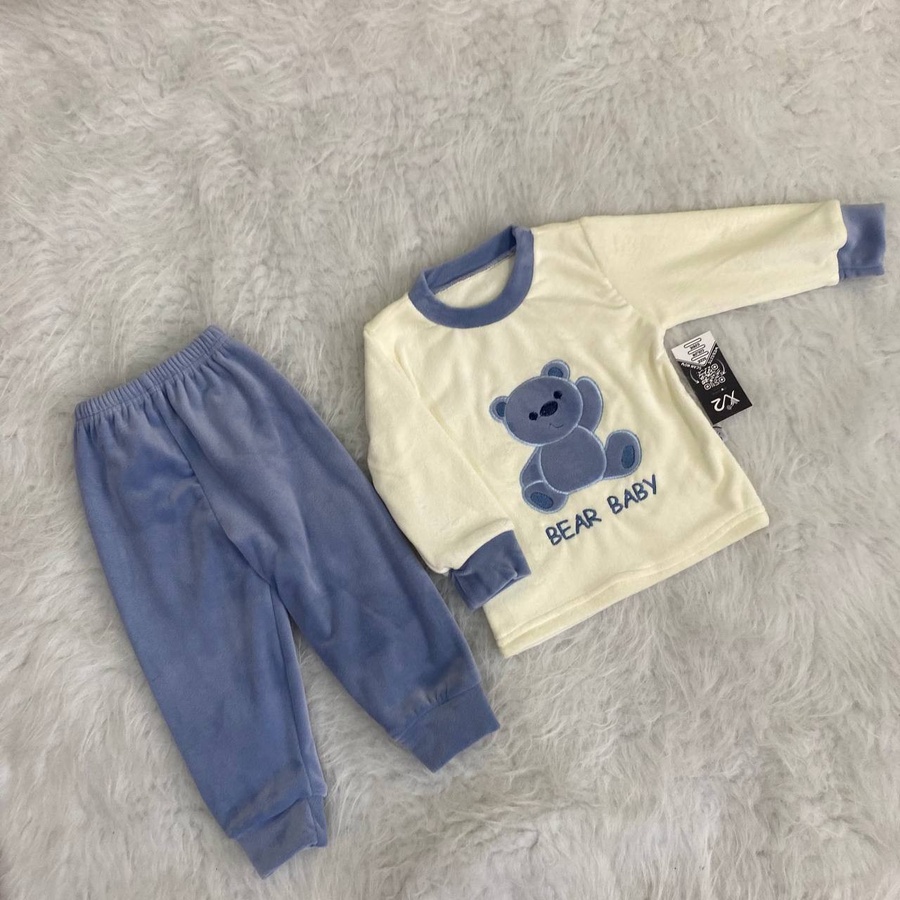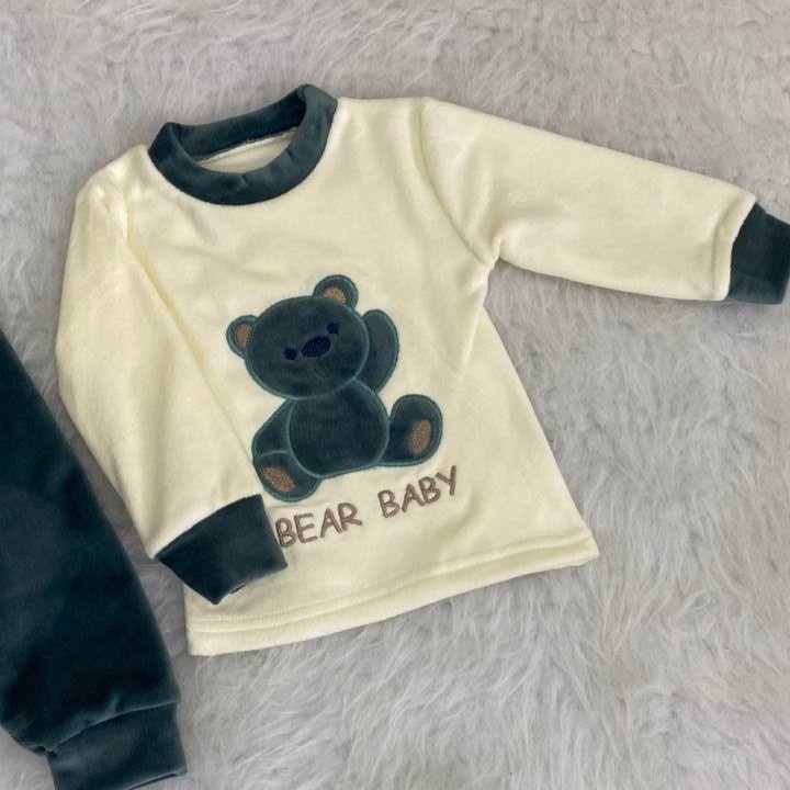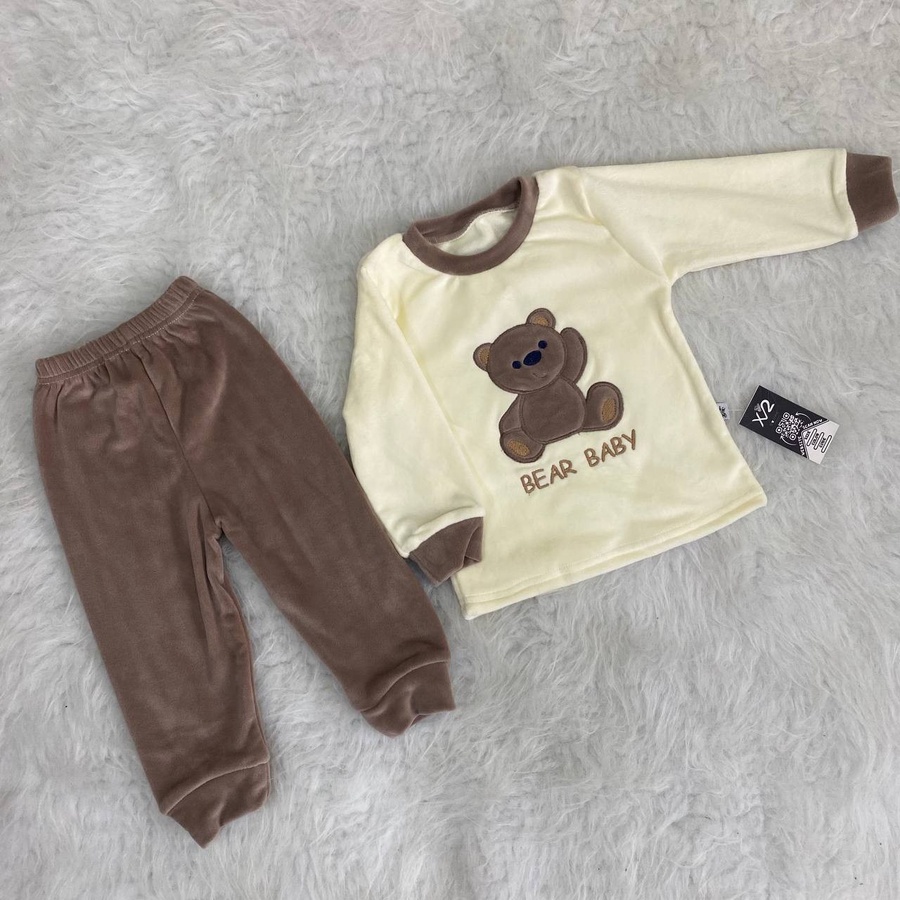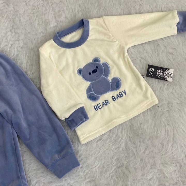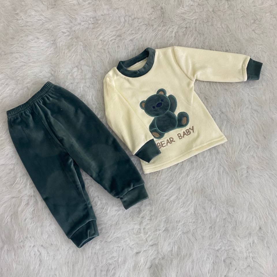 بجامة قطيفة شتوي للبيبي موديل Bear بخامة ناعمة وجودة عالية، مناسبة من 3 شهور ل 15 شهر، مثالية للبيت والخروج الخفيف في الشتاء.